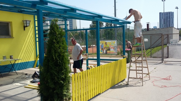 Die ersten Grashalme sprießen bereits am neuen Rasenplatz, die Kabinen und Duschräume reinigte unser Platzwart Franz gründlichst, aber auch im Kabinenbereich wird eifrigst gearbeitet.