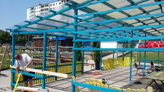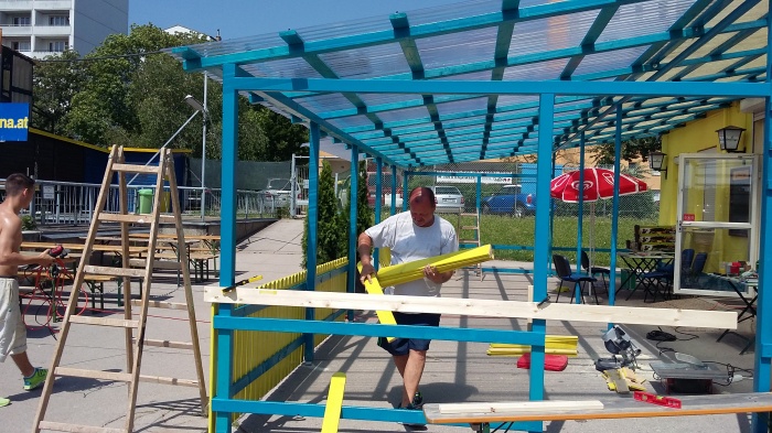 Das Vordach wird verlängert, sodass man bei jedem Wetter gemütlich sitzen kann.