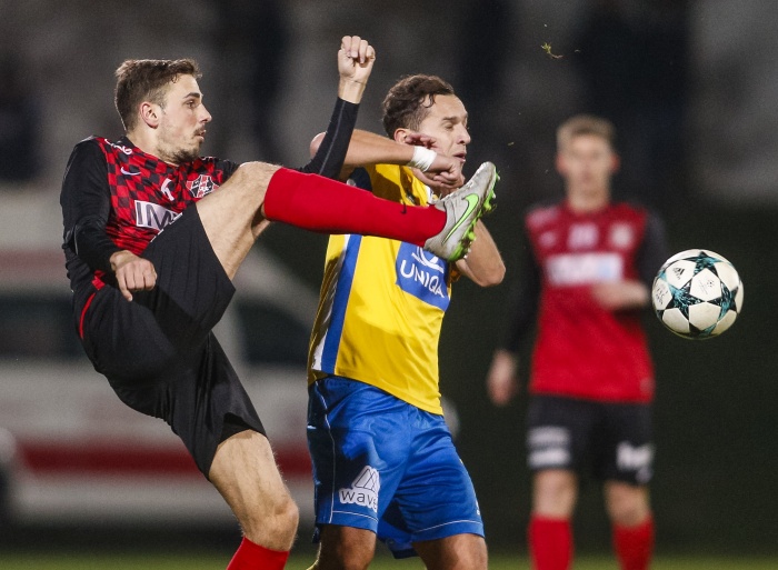So sehr sich die Gäste bemühten, sie konnten kaum gefährlich in den Strafraum kommen, Krisch und Katzer hatten im Zentrum alles im Griff, so verlegten sich die Marchfelder auf Distanzschüsse. Im einsetzenden Nieselregen ein durchaus probates Mittel. Kostner war denn auch bei 2 Schüssen von Josic und Zlatkovic gefordert, parierte den Ball aber jeweils gut. Je länger das Spiel dauerte, desto mehr versuchten die Gäste es mit der Brechstange, die Vienna kam hingegen zu einigen gut vorgetragenen Angriffen, vornehmlich über die beiderseits sehr agilen Außenbahnspieler. Sowohl Korkmaz, gut unterstützt von Rajic, als auch Steiner zusammen mit Baldia sorgten für gefährliche Szenen.