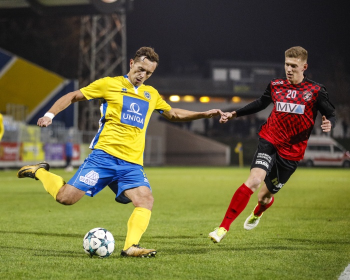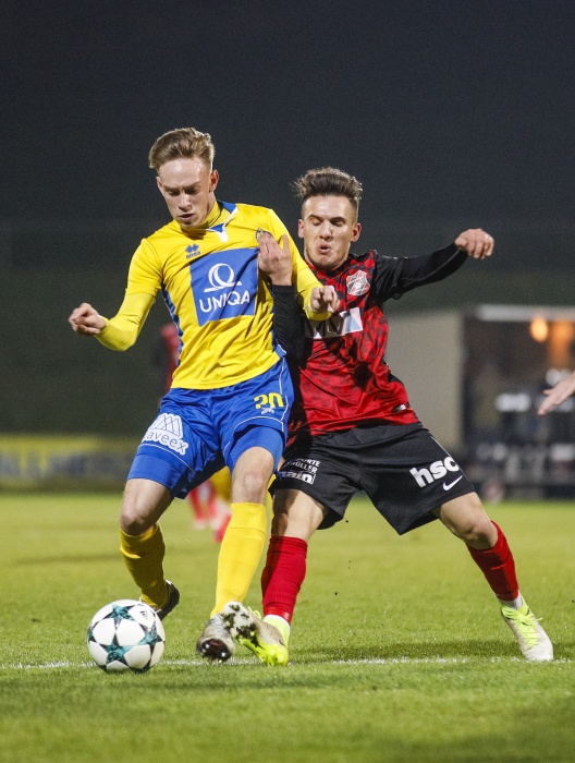 Es dauerte etwa 5 Minuten, dann war auch auf Blau-Gelber Seite die Betriebstemperatur erreicht, erste Chancen wurden herausgespielt. Mit einem punktgenauen Wechselpass über das Mittelfeld hinweg wurde Steiner gut in Szene gesetzt, dieser legte auf den rasch aufgerückten Van Zaanen ab, dessen Schuss von der Strafraumgrenze aber zu schwach ausfiel um Petermann vor ernste Probleme zu stellen.