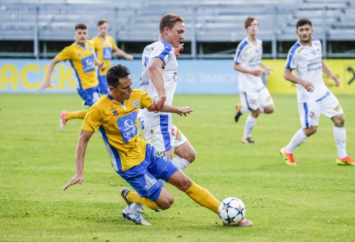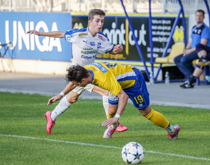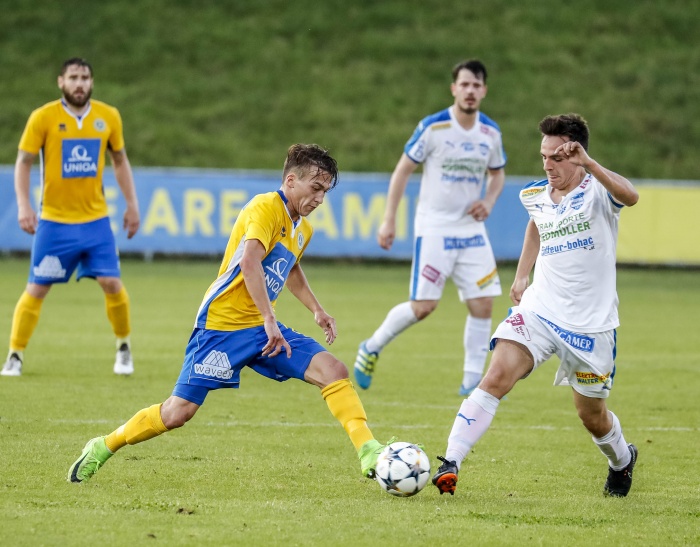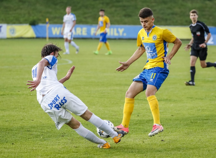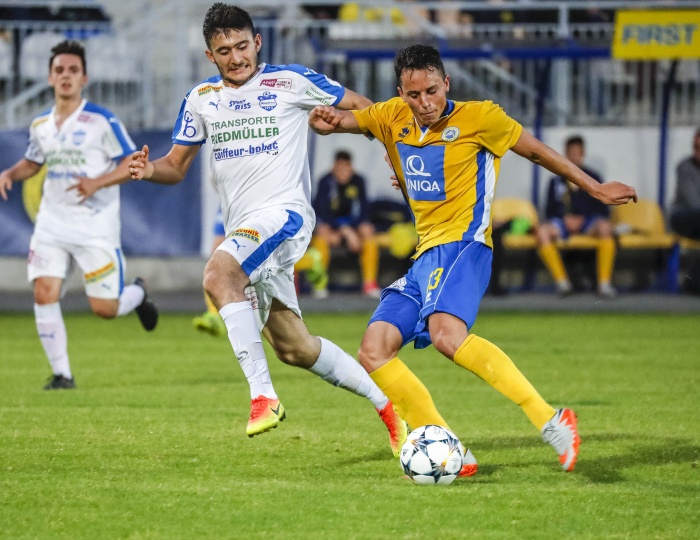Die erste große Gelegenheit eröffnete sich in der 9. Minute, Babadostu setzte sich energisch auf der rechten Seite durch, Baldia konnte trotz Bedrängnis der Stadlauer Verteidigung die Flanke annehmen und in die Mitte zu Steiner weiterleiten. Dessen Schuss in die rechte Ecke passte exakt, ein wichtiger Treffer für das Selbstvertrauen.