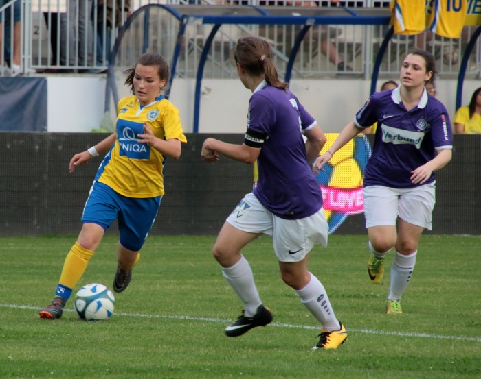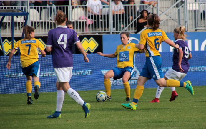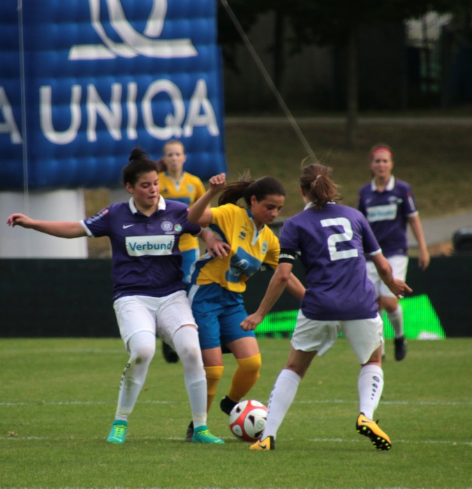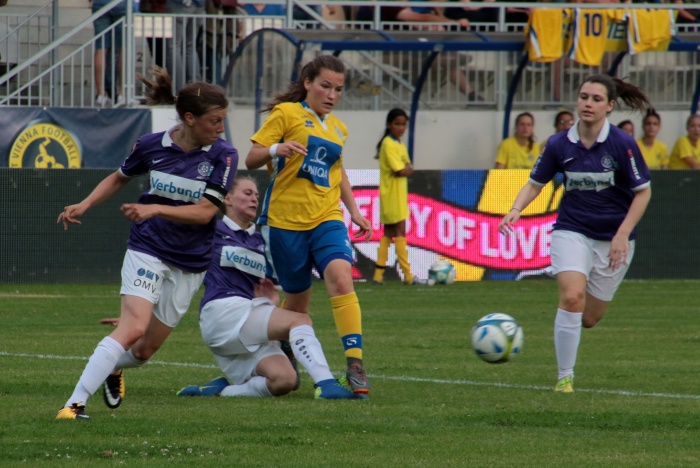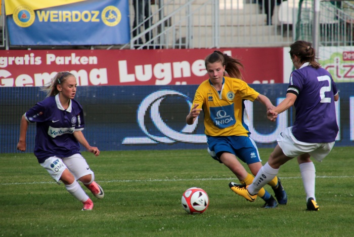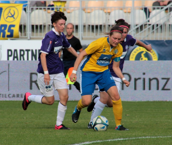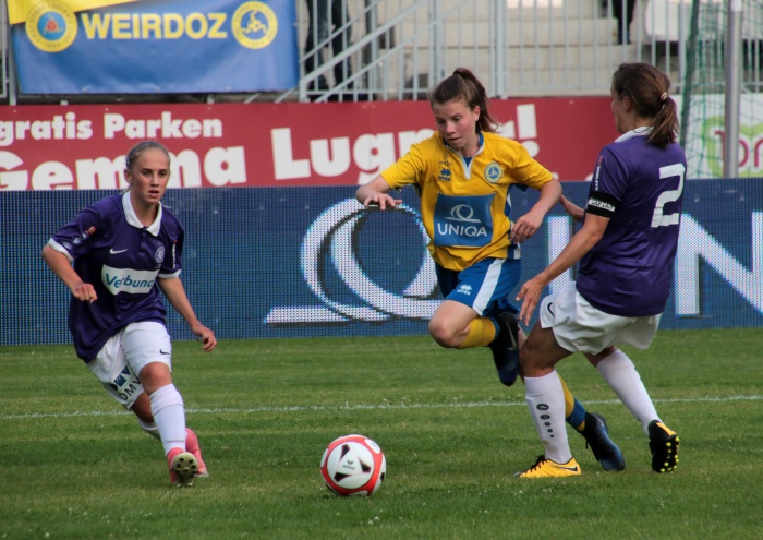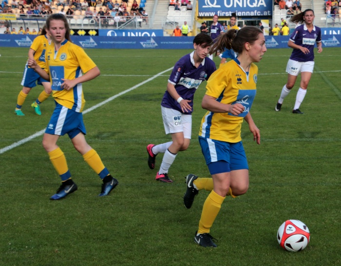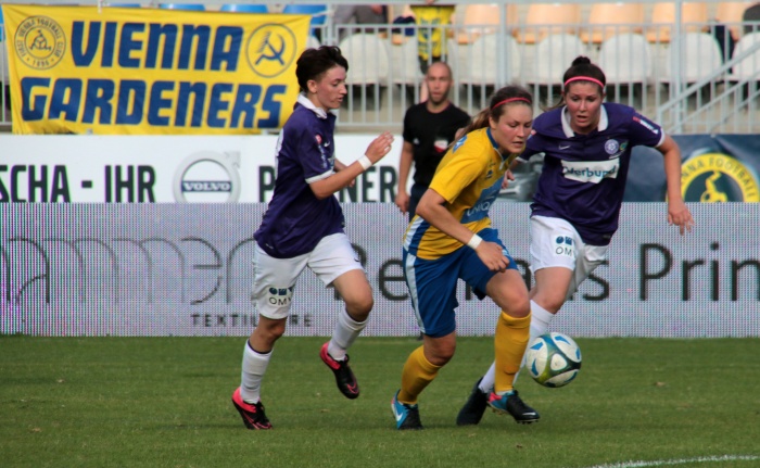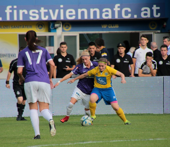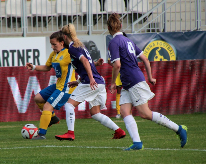 Der erste Versuch der Vienna, Torgefahr zu erzeugen, kam über die linke Seite von Sophie Neid, der Pass Richtung Liebhart fiel doch zu steil aus. Dennoch diese Aktion war so etwas wie das Startzeichen, die Anfangsnervosität verschwand allmählich.