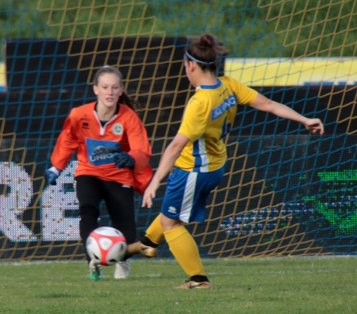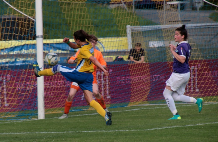 Die wendige Offensivspielerin zeichnete dann auch für den Führungstreffer verantwortlich, mit einem gelungenen Haken ließ sie die Abwehr stehen und schob den Ball souverän an Hinterberger zur umjubelten Führung ins Netz.