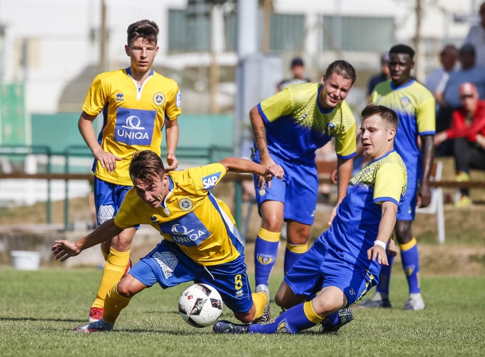 Bei Temperaturen jenseits der 30 Grad Marke musste sich unsere in Teilen neuformierte Mannschaft erstmals in einem Bewerbsspiel beweisen und gewann bei Siemens Großfeld mit 3:1 (0:0). Die Elf von Trainer Hlinka konnte in der Vorbereitung phasenweise schon mit gutem Spiel auf sich aufmerksam machen, man war gespannt wie dies nun in der Meisterschaft umgesetzt werden konnte. Für viele Beobachter etwas unerwartet war die Formation unserer Abwehr, denn da stand nicht Krisch im Zentrum, sondern Neuzugang Rauchecker und der jungen Strasser bildeten die Innenverteidigung, an den Seiten unterstützt von Kapitän Lenko und Korkmaz. Auf den 6er Positionen wurde auf Routine gesetzt, hier agierten Krisch und Kindig, davor sollte Babic die Akzente im zentralen Mittelfeld setzen an den Seiten begannen Demic und Orgolitsch, Kurtisi war in diesem 4-2-3-1 die Sturmspitze.