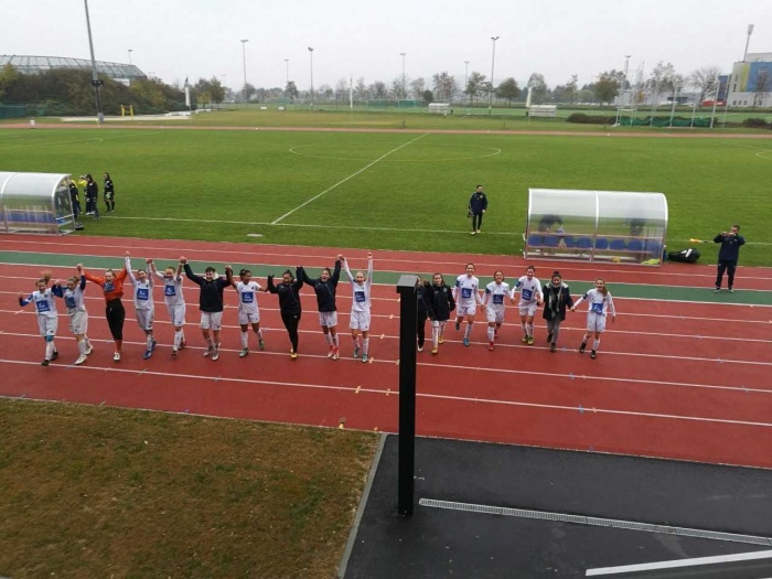 Das Spiel gegen SKN St. Pölten 2 beginnt etwas nervös aus der Sicht der Blau-Gelben. Nach 3 Minuten klingelt es im Tor der Gäste, doch der Schiedsrichter entscheidet auf Abseits. Danach stellen sich die Döblingerinnen auf das Tempo ein und versuchen durch hohes Pressing den Spielaufbau zu stören. Hinten hält die 4er Kette dich, lässt kaum etwas zu. Im eigenen Spielaufbau schleichen sich immer wieder Fehler ein, weil der Gegner ebenfalls hoch presst. Nach gut einer Viertelstunde nimmt sich Zimmer ein Herz, schickt Mattner in die Tiefe, die nach ein paar Hacken Batarilo ideal zum 1:0 bedient. Nach dem Tor wacht der Vienna-Motor richtig auf, Neid vergibt zwei Mal im 16er. Nach einer halben Stunde dürfen die Blau-Gelben zum zweiten Mal jubeln. Keles überhebt nach einer schönen Kombination die heraus eilende Torfrau, 2:0. Kurz vor der Pause begeht Vienna ein Foul 18 Meter vom eigenen Tor entfernt. Gegen den platzierten Freistoß hat Piplits keine Chance, nur mehr 2:1 für Vienna.