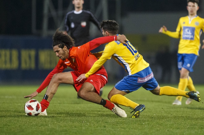 Sie hatten aber eben auch ihre Schwachstellen und die wurden von der Vienna konsequent genutzt. Schnelle Angriffe über die Seiten, vorzugsweise über die Linke brachten wiederholt Gefahr und letztlich auch Tore. Das 3:0 erzielte Babic per Kopf nachdem Rauchecker und Korkmaz die Abwehr ausgehebelt hatten, mit dem 4:0 baute Kurtisi seine Führung in der Torschützenliste aus. Weitere Chancen folgten, Rauchecker traf nur die Latte, Kurtisi verfehlte das Ziel knapp und Patricios Schuss konnte gerade noch von einem Verteidiger abgeblockt werden. Knapp vor dem Pausenpfiff konnte Babic nach Vorarbeit von Kurtisi noch auf 5:0 erhöhen.