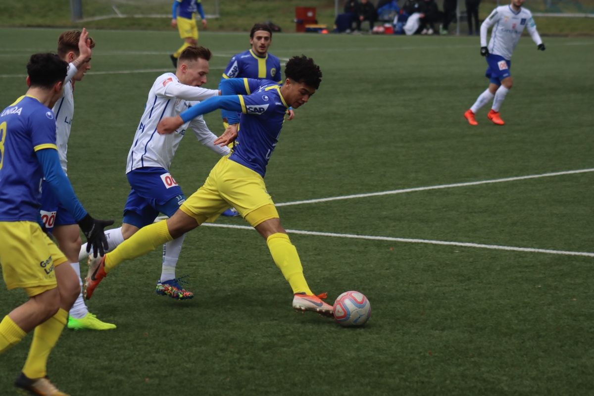 Die Führung der Blau-Gelben folgte in der 9. Minute. Düzgün eroberte mit energischem Pressing an der gegnerischen Toroutlinie den Ball und bediente Konrad mustergültig, der Routinier musste nur mehr das Leder über die Linie bringen. Danach hatten die Gäste zwar weiterhin mehr Ballbesitz, mussten aber froh sein, dass sie nicht weiter in Rückstand gerieten. Denn die Vienna ließ den Gegner kaum einmal gefährlich vor das Tor kommen, erzeugte andererseits mit gutem Umschaltspiel und schön vorgetragenen Angriffen für Gefahr. Schaltzentrale dieser Spielzüge war ein ums andere Mal Düzgün, einmal war Luxbacher nicht entschlossen genug sofort den Abschluss zu suchen, ein anderes Mal schob Konrad das Leder am Tor vorbei. Blau-Weiß ließ sich davon offenbar beeindrucken, die Vienna hatte das Spiel nun vollständig im Griff.