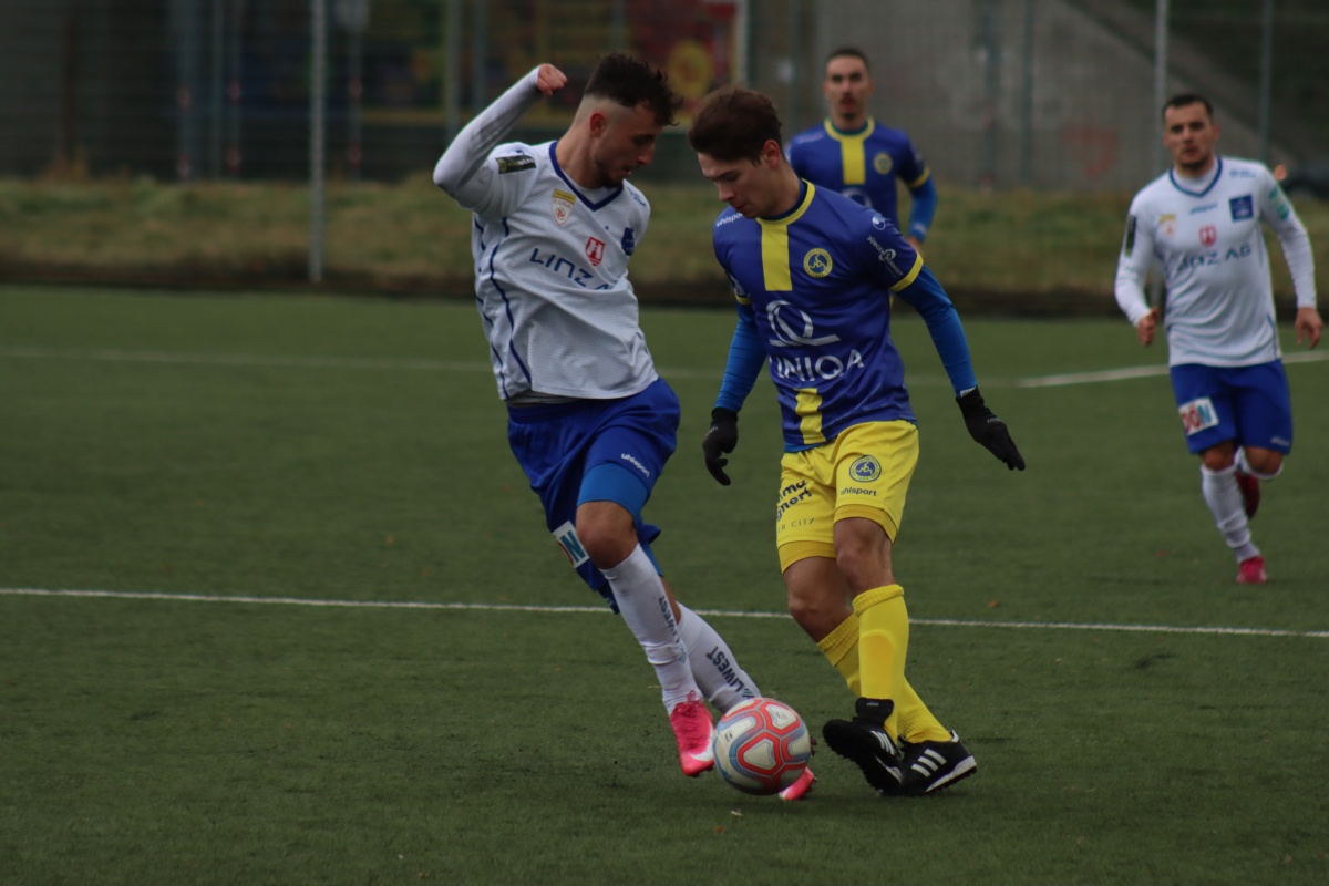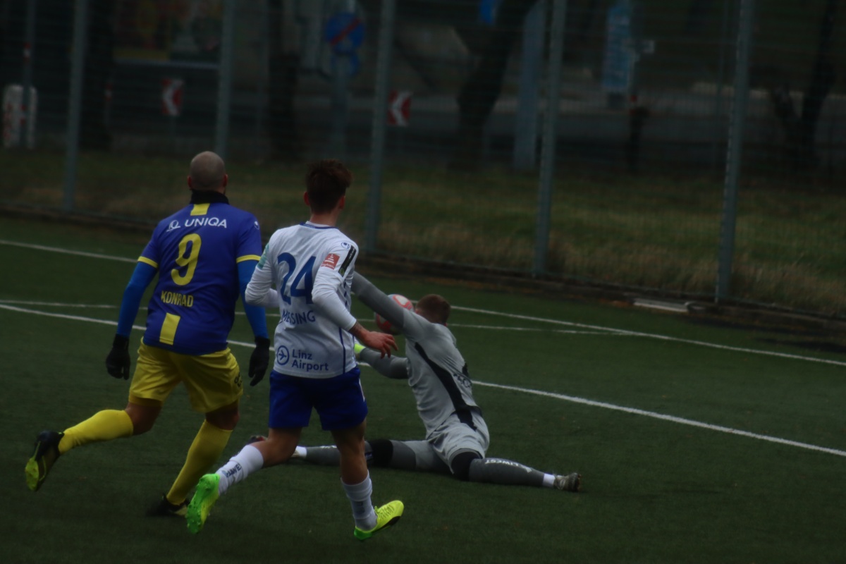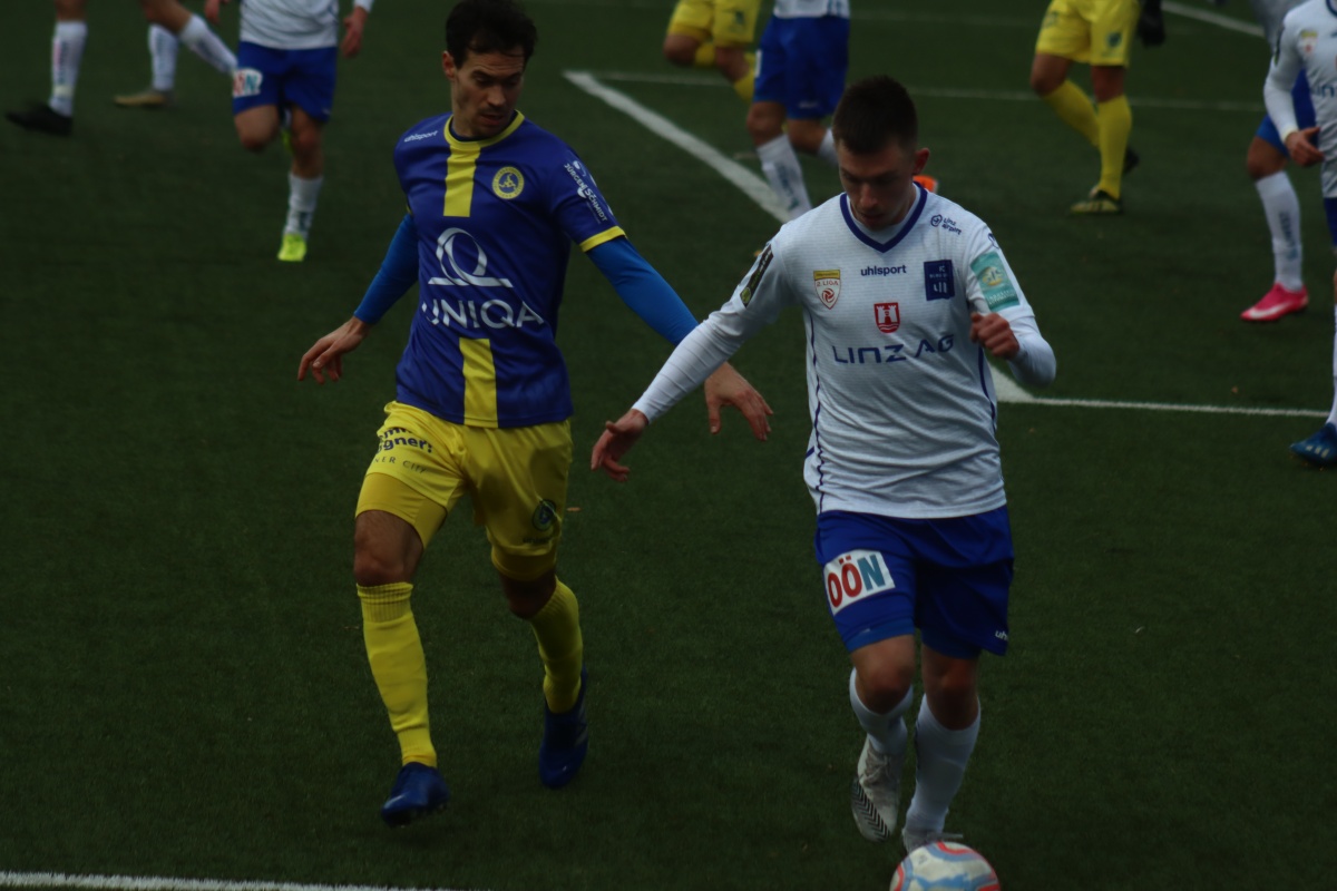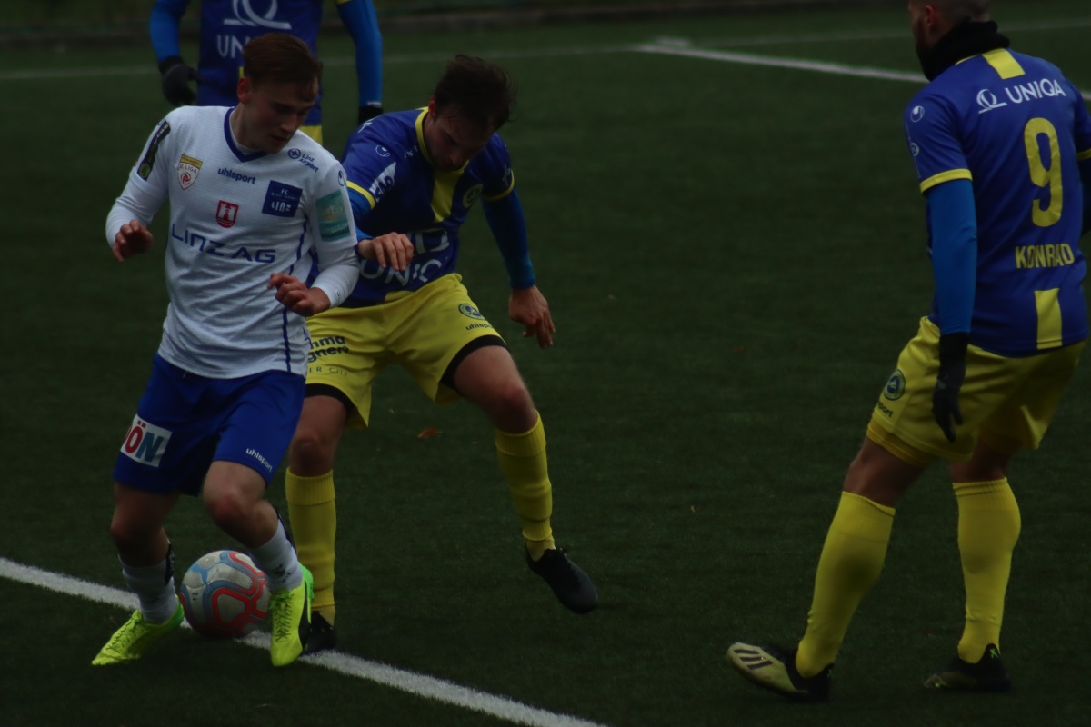 Das mag den einen oder anderen Fan durchaus erfreut haben, konnte man da doch als Zaungast wieder das Match mitverfolgen. Und so viel sei vorweggenommen, dieses Spiel war es durchaus wert, gesehen zu werden. Die Vienna präsentierte sich von Beginn an darauf bedacht, defensiv stabil zu stehen, dies war aber keineswegs gelichbedeutend mit sich hinten einigeln. Standesgemäß machten die Gäste zunächst das Spiel, die Blau-Gelben agierten aus der soliden Abwehr mit schnellem Umschaltspiel. Die erste Chance hatten die Gäste, Pomer wurde im Zentrum in schwer abseitsverdächtiger Position freigespielt, der Linzer Stürmer scheiterte aber an Kazan. Praktisch im Gegenzug folgte der erste Warnschuss der Döblinger, der von der rechten Seite nach innen gezogene Grabovac schoss jedoch über das Tor.