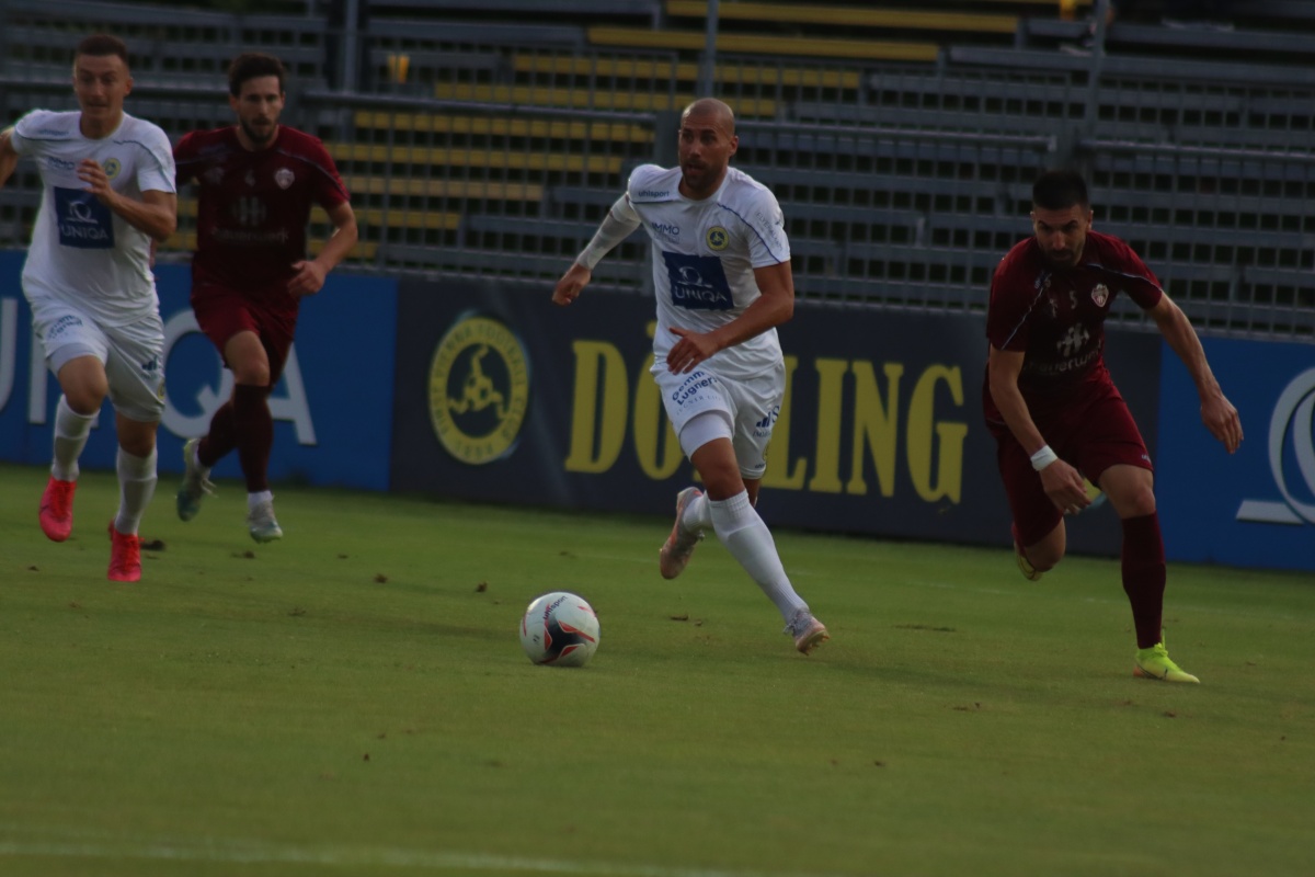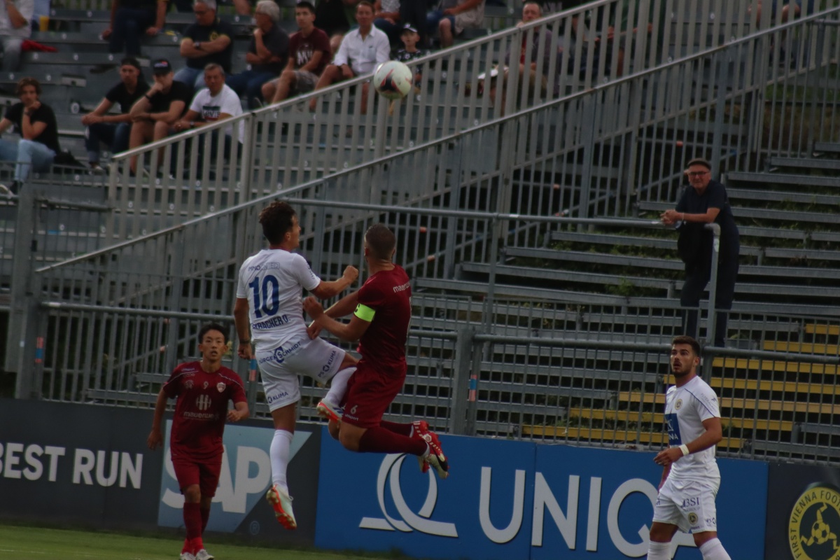 Kurz darauf deutete Mauerwerk erstmals an, dass in der Mannschaft einiges an spielerischem Potenzial steckt, ein gefälliger Angriff wurde aber von unserer Abwehr problemlos abgefangen. Die Gäste verzichteten größtenteils auf Pressing, sie wollten vor allem über schnelles Umschaltspiel aus der eigenen Abwehr zum Erfolg kommen. Dazu kamen sie in den ersten zehn Minuten kaum, die Vienna fackelte nicht lange, mit geradlinigem Spiel, zum Teil auch mit weiten Bällen hinter die Abwehr suchte man die schnelle Entscheidung. Gefährliche Szenen gab es nach Standards von Lenko, einmal rettete Keeper Zdravkovic vor Toth, ein weiteres Mal flog ein Kopfball über das Tor.