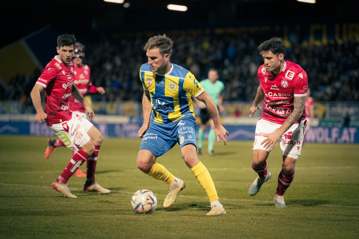 Der GAK startete ambitioniert in das Spiel. Nach Chancen durch Liendl und Jastremski war es Lang der für die frühe Führung für die Grazer sorgte. Der aufrückende Verteidiger spielte nach seinem entschlossenen Vorstoß auf die rechte Seite zu Viunnyk, der mit einem Seitenwechsel auf Liendl das Spiel verlagerte. Lang ging mit in den Strafraum, Liendls Flanke kam exakt, Lang vollendete den Angriff per Kopf zur 1:0-Führung für die Steirer.