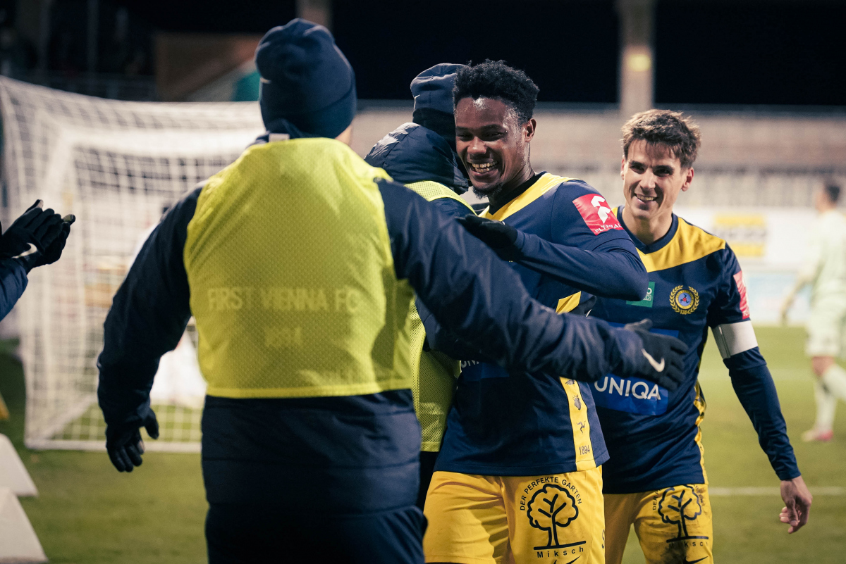 Bei frostigen Temperaturen begann die Vienna konzentriert und entschlossen, von Beginn an das Spiel zu diktieren. Bereits in der 5. Minute belohnten sich die Blau-Gelben für ihren engagierten Auftakt. Nach einem Ballgewinn im Mittelfeld setzte Monschein den durchstartenden Boateng präzise in Szene. Der Stürmer behielt im Eins-gegen-Eins gegen den ehemaligen Vienna-Keeper Gremsl die Nerven und schob souverän zur 1:0-Führung ein.