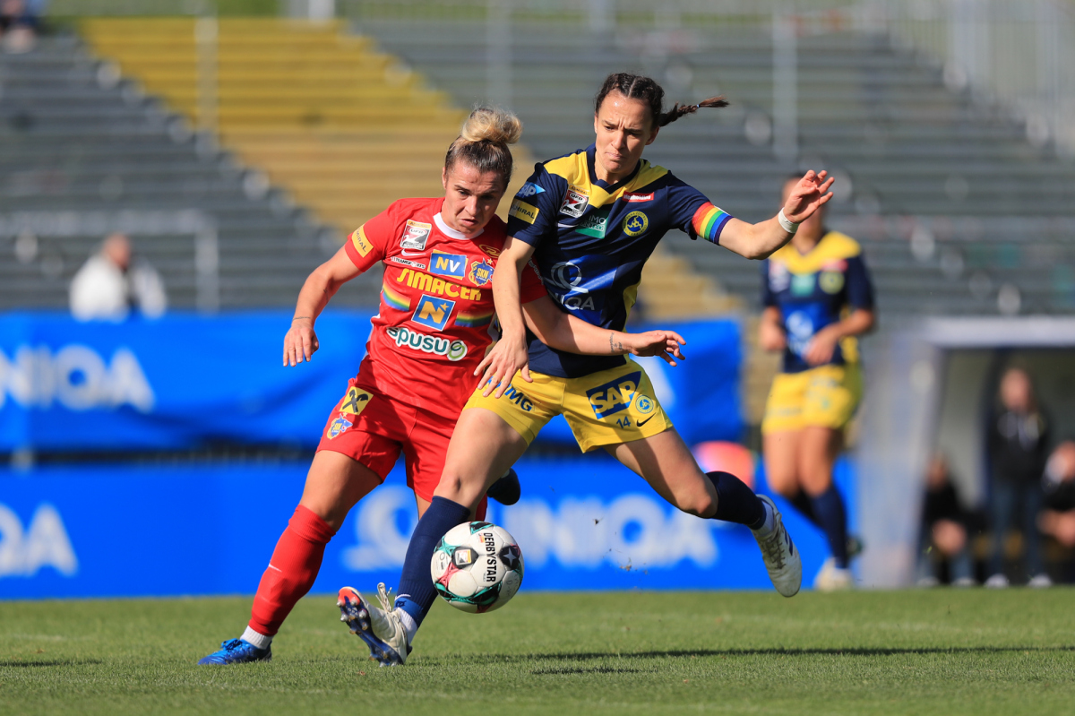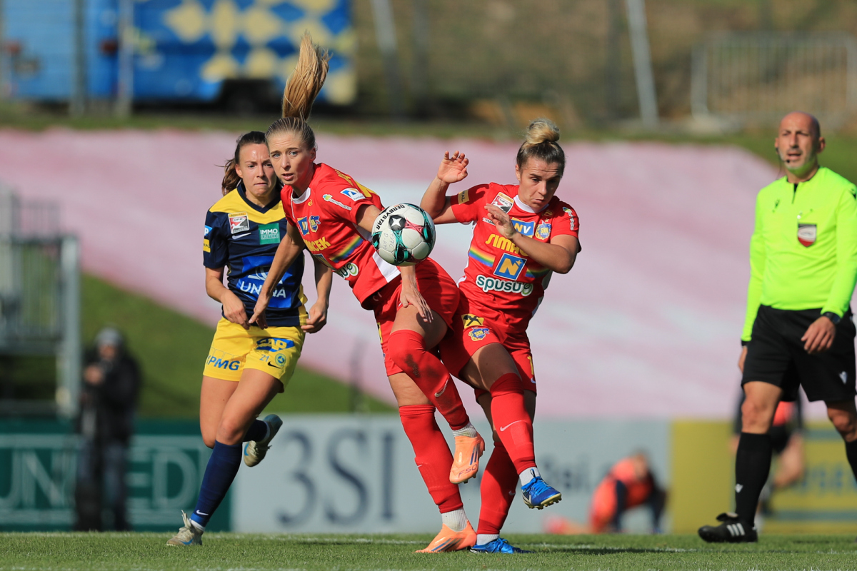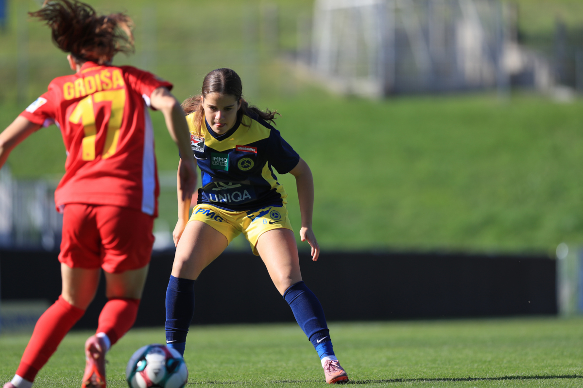 Die Vienna startete engagiert in die Partie und versuchte von Beginn an, eigene Akzente im Offensivspiel zu setzen. Doch bereits in der sechsten Minute mussten die Döblingerinnen den ersten Rückschlag hinnehmen: Ein langer Ball der St. Pöltnerinnen erreichte Brunold, die sich im Eins-gegen-eins gegen Piplits durchsetzte und souverän zum 1:0 für den SKN einschob.