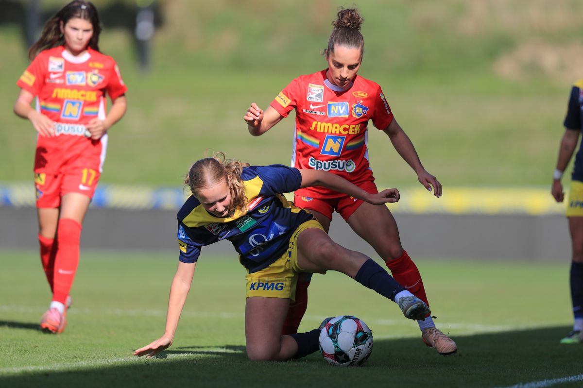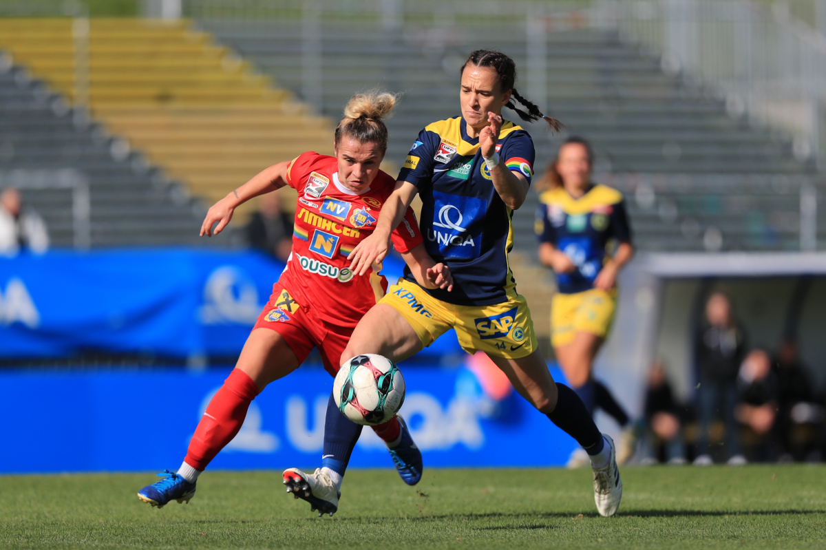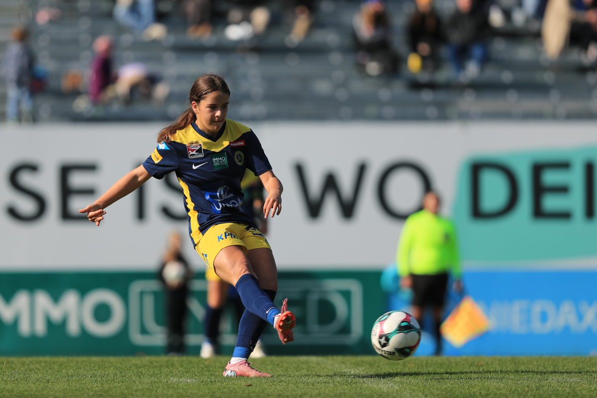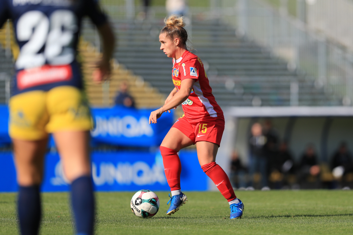 Die Vienna startete engagiert in die Partie und versuchte von Beginn an, eigene Akzente im Offensivspiel zu setzen. Doch bereits in der sechsten Minute mussten die Döblingerinnen den ersten Rückschlag hinnehmen: Ein langer Ball der St. Pöltnerinnen erreichte Brunold, die sich im Eins-gegen-eins gegen Piplits durchsetzte und souverän zum 1:0 für den SKN einschob.