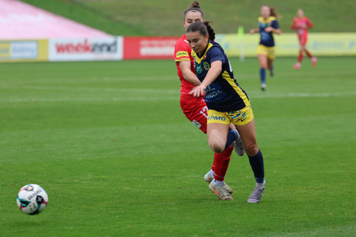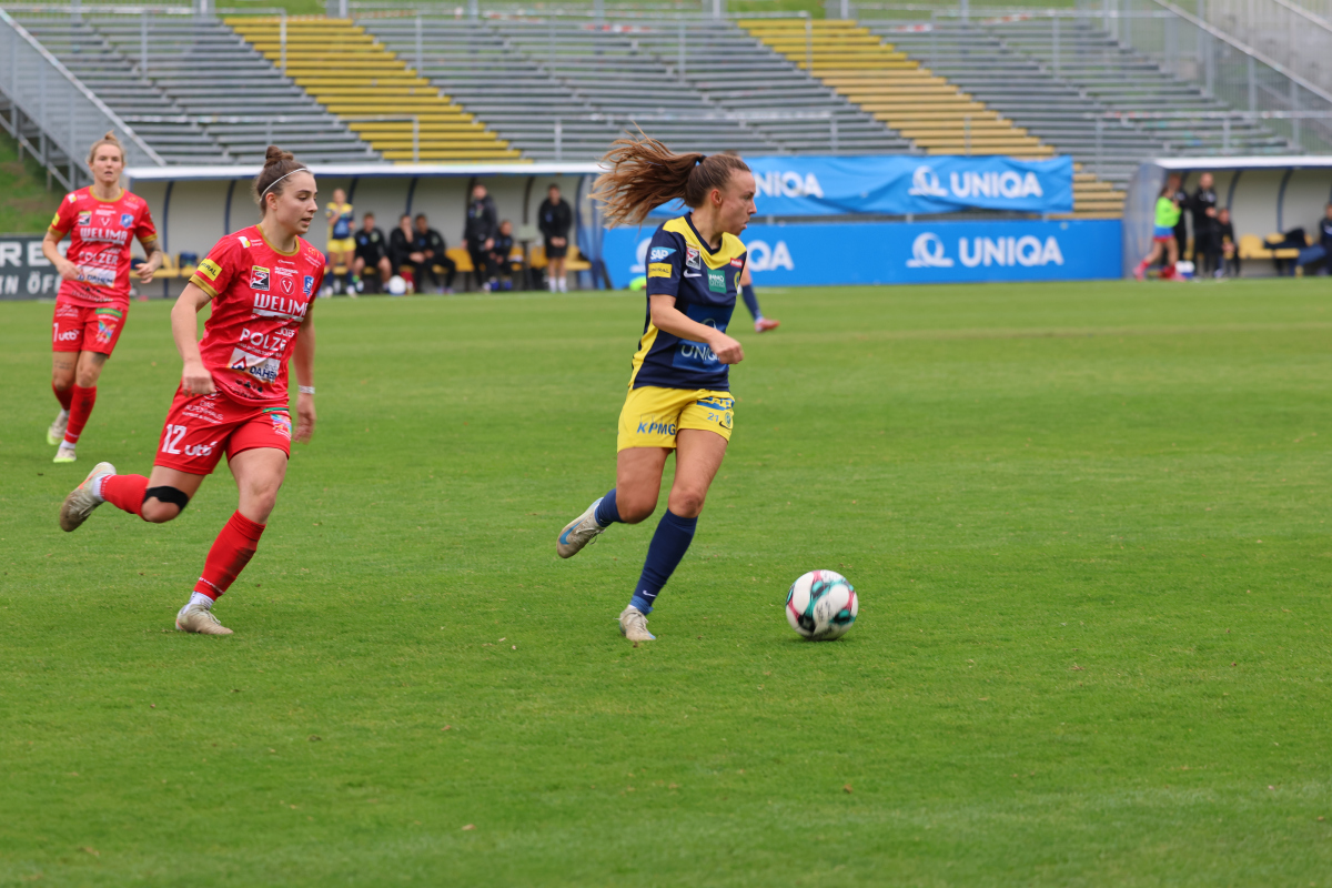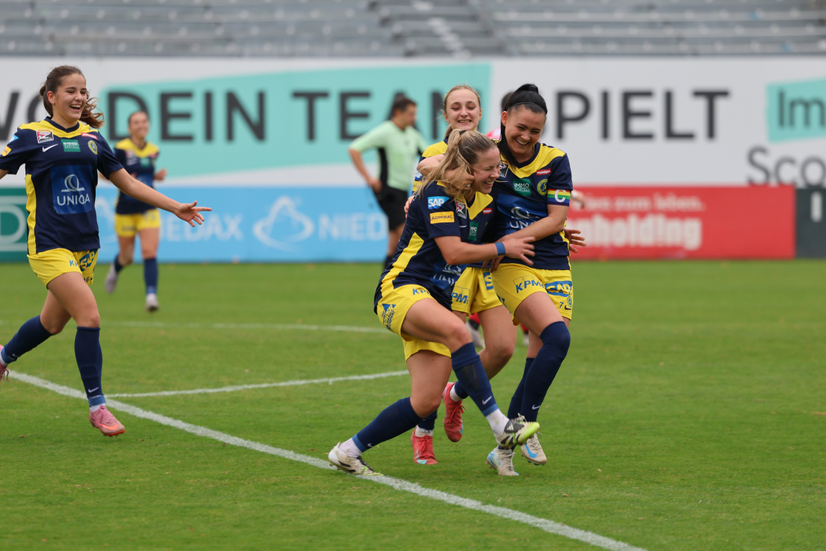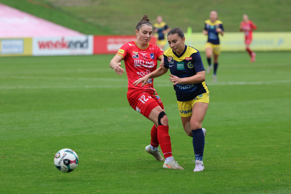 Die Gastgeberinnen ließen sich davon jedoch nicht beeindrucken und suchten weiterhin den Weg nach vorne. Amuchie hatte in der 33. Minute eine gute Gelegenheit, ihr Schuss aus der Distanz ging jedoch deutlich über das Tor. Kurz darauf setzte Hahn nach einem schönen Zuspiel von Höcherl einen gefährlichen Abschluss ab, den die Torfrau der Gäste mit einer starken Parade entschärfen konnte. Auch Schneiderbauer versuchte es wenig später aus der Ferne, verzog aber knapp.