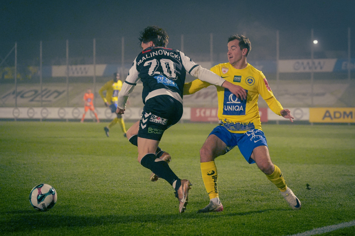 Die bislang beste Gelegenheit der Blau-Gelben folgte kurz darauf: In der 32. Minute flankte Bauer präzise in den Strafraum, Schmidt verlängerte per Kopf auf Luxbacher, doch Schröcker reagierte blitzschnell und verhinderte den Rückstand.