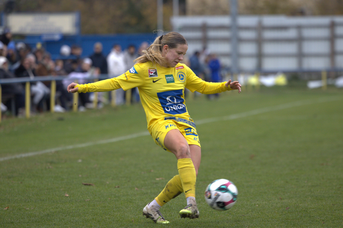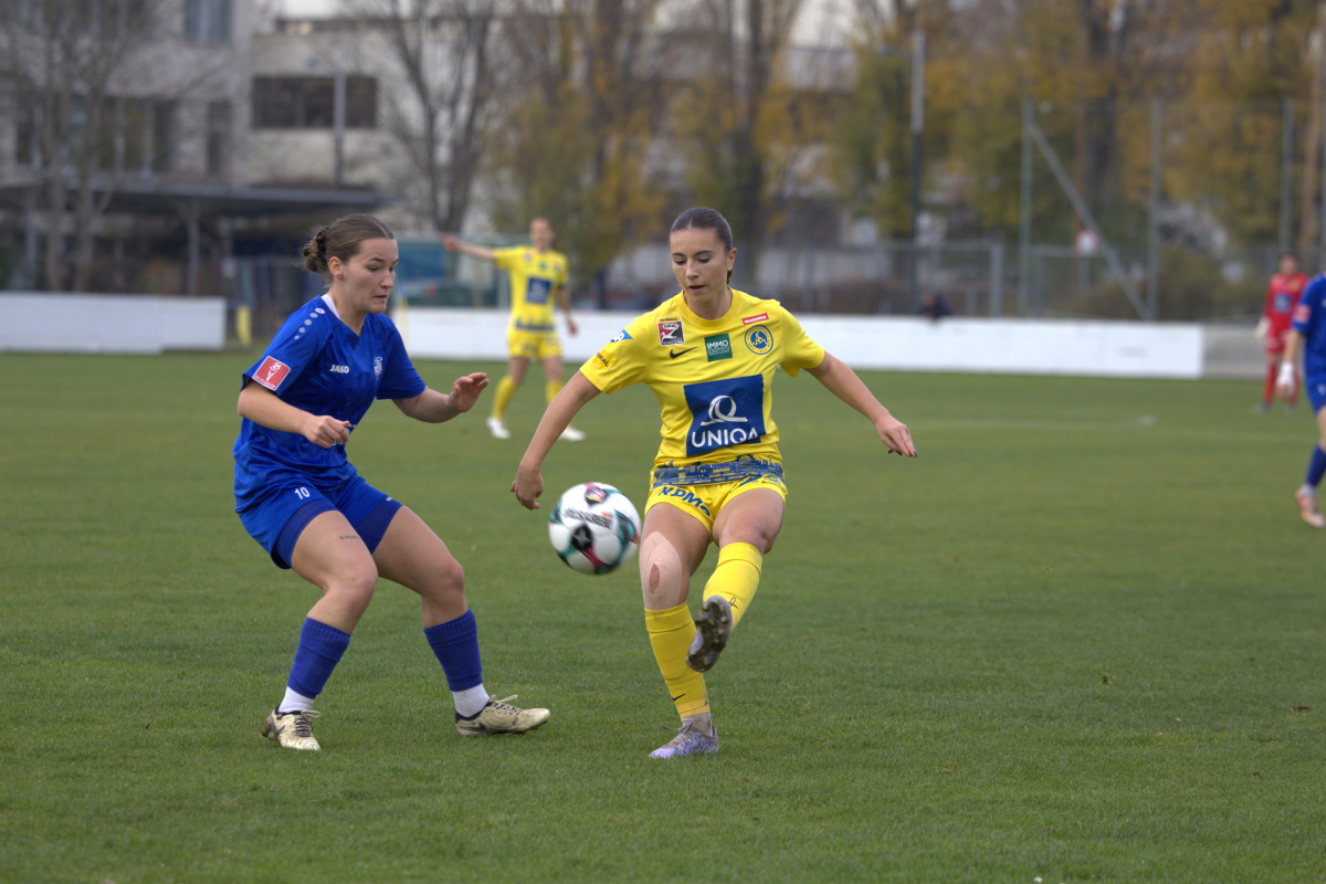 Die Antwort der Vienna ließ aber nicht lange auf sich warten. In der 23. Minute erkämpfte sich Havel, die ihr Startelfdebüt für die Vienna gab, auf der rechten Seite den Ball und trieb ihn nach vorne. Sie spielte eine perfekte Flanke in die Mitte zu Lueger. Die Stürmerin ließ sich die Topchance nicht nehmen und netzte zum Ausgleich ein.