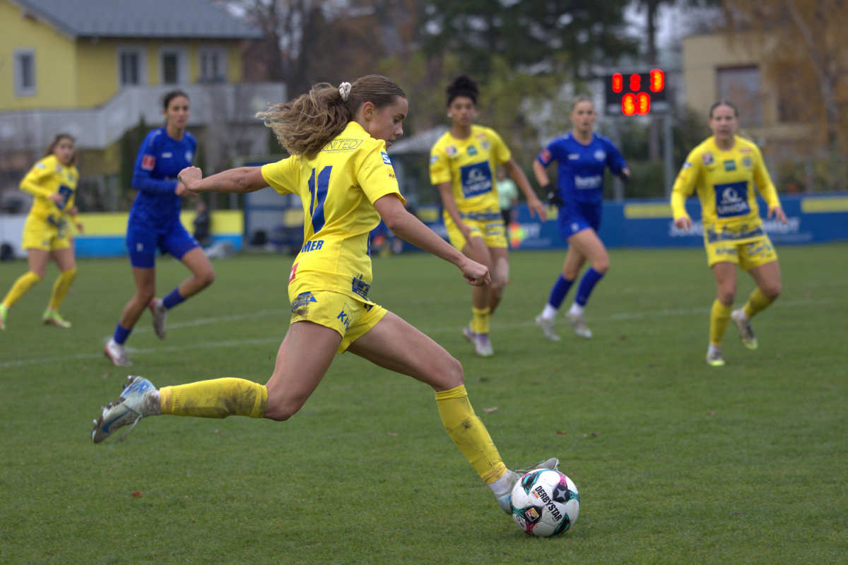 Bis zum Ende der ersten Halbzeit zeigte sich ein ähnliches Bild wie zu Beginn des Spiels. Die Vienna war das überlegene Team und ließ kaum was anbrennen. Die größte Chance zur Führung hatte Pfanner, ihr Schuss aus gut 16 Metern Entfernung sprang jedoch nur an die Latte. Damit ging es mit dem 1:1 in die Pause.