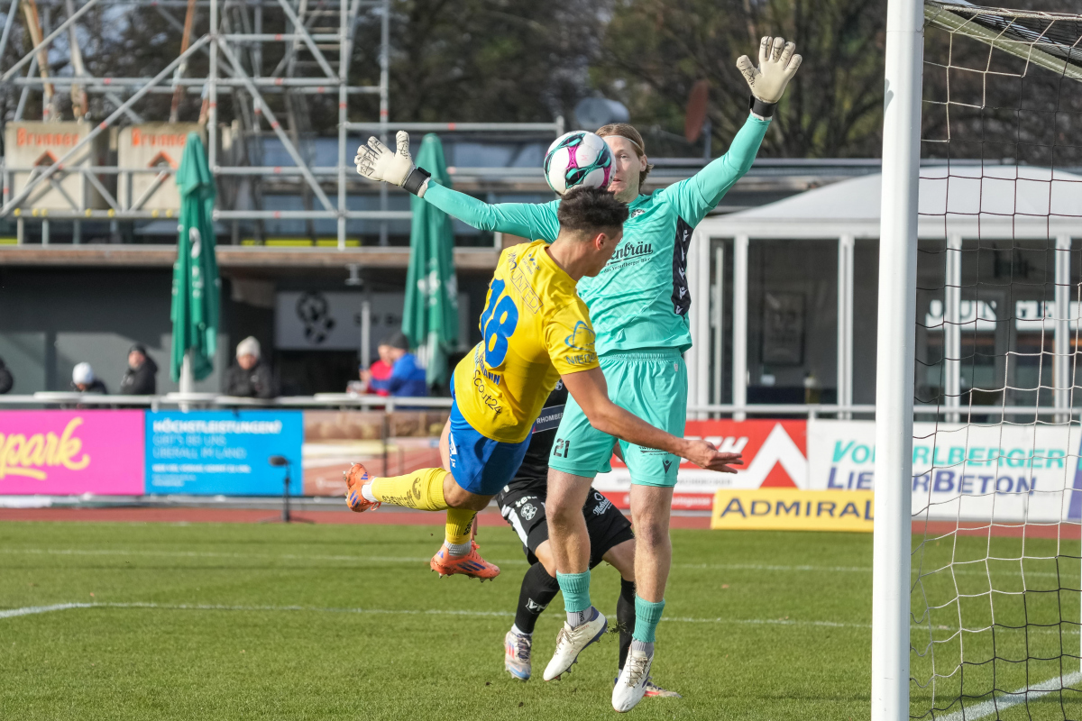 In der 17. Minute dann der Rückschlag: Ein Pass der Bregenzer rutschte an drei Blau-Gelben vorbei und fand Tartarotti, der zur 1:0-Führung einschob. Die Vienna versuchte sofort zu antworten, doch Djuricins Abschluss stellte den Heimkeeper nicht vor große Probleme.