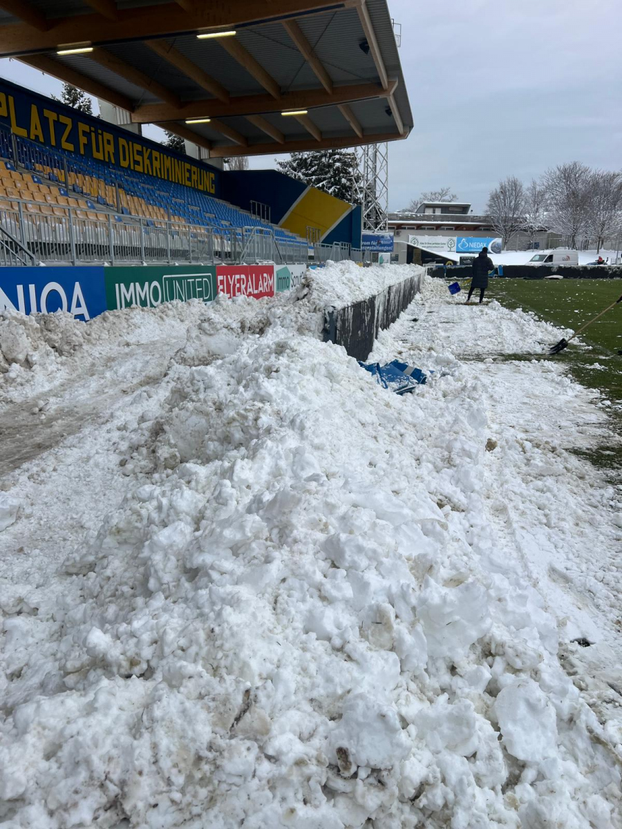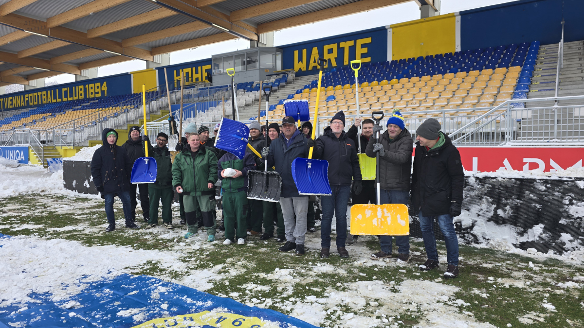 Die sportliche Leitung fühlte sich gut und freute sich auf das erste Spiel der Rückrunde vor heimischer Kulisse. Sie wollte unbedingt, dass das Spiel stattfindet. Somit wurde alles, aber auch wirklich alles, in die Wege geleitet, dass dieser Wunsch in Erfüllung geht. Geschlossen standen die gesamte Geschäftsführung, Funktionäre der Vienna, Trainer aus allen Bereichen, Jugend am Werk und Supporters am eingeschneiten Platz auf der Hohen Warte und verrichteten den ganzen Tag, wie schon in der Nacht zuvor, harte Arbeit, um den Wunsch der sportlichen Führung wahrwerden zu lassen.