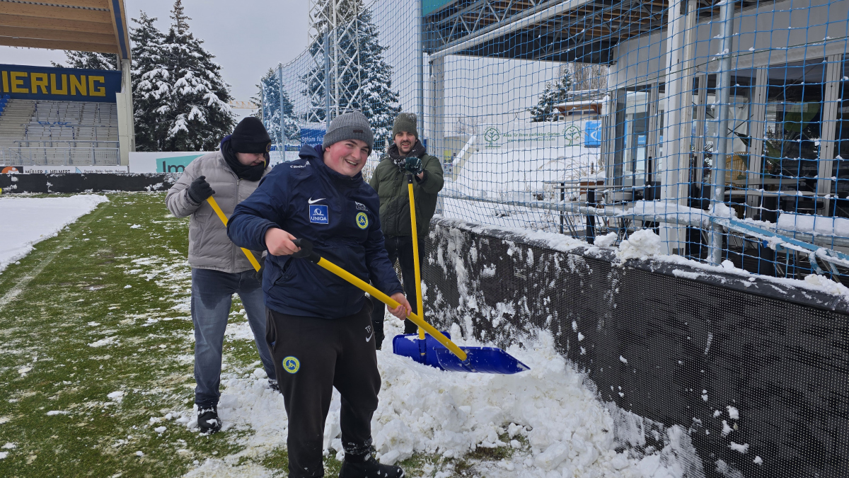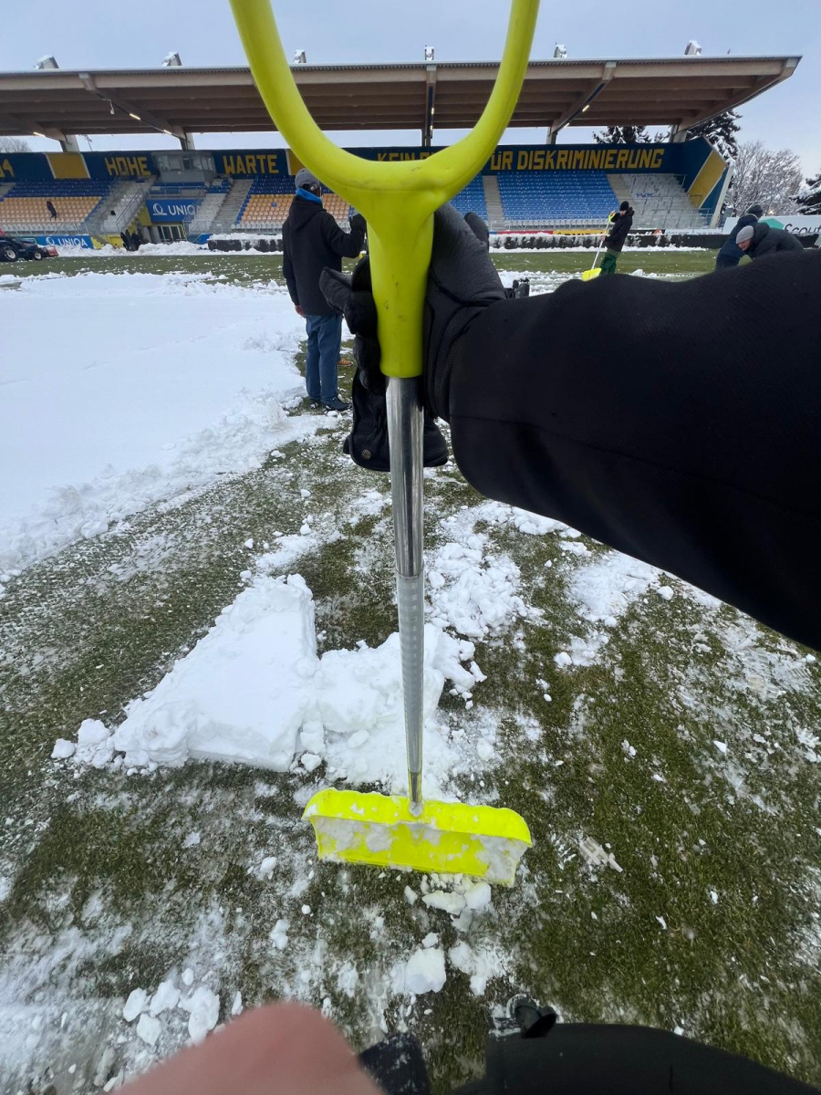 Über 400 Tonnen Schnee wurden von der Vienna-Family weggeräumt. Lasst euch das auf der Zunge zergehen! Mehrere Hundert Euro wurden für Schneeschaufeln ausgegeben, da der Andrang zum Helfen so riesig war. Leute sind scharenweise nach verrichteter Lohnarbeit auf die Hohe Warte gepilgert, um den Verein zu unterstützen. Geschlossen, Schulter an Schulter, für den Verein, standen alle zusammen. Das nicht für möglich gehaltene wurde vollbracht und um 18:00 Ortszeit gab es das „okay“ vom Schiri. Einem Fußballwunder auf der Hohen Warte stand nichts mehr im Wege.