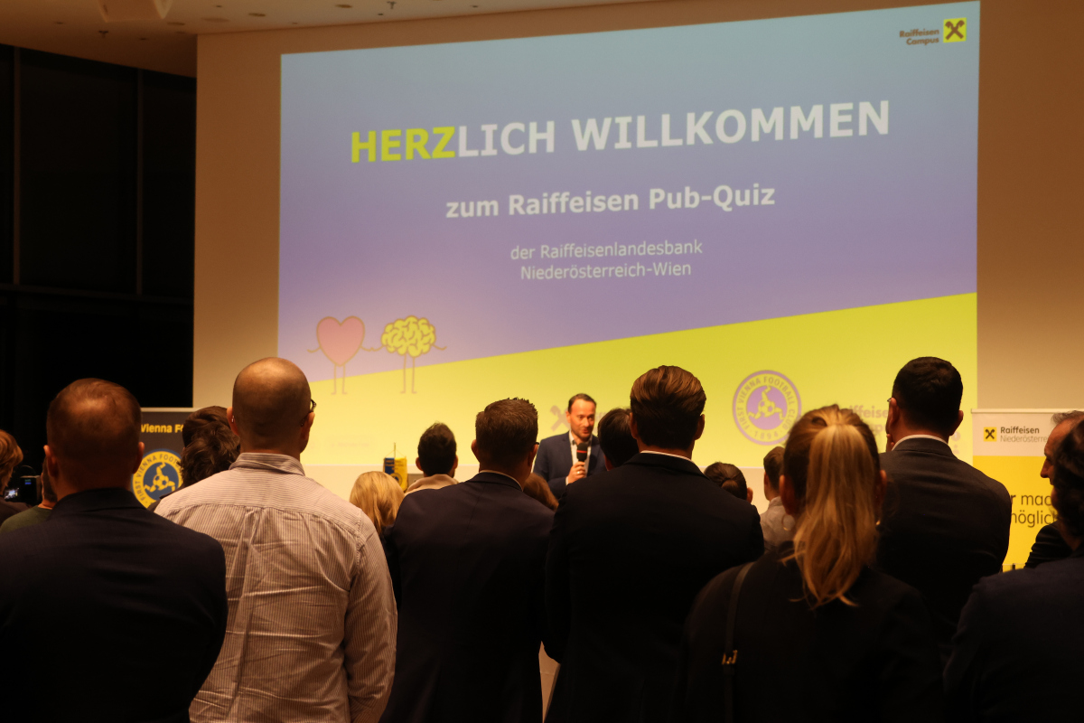 Der 27. Abend im Rahmen des beliebten Netzwerkclubs des First Vienna FC 1894 fand am 24.02.2026 beim langjährigen Businesspartner der Raiffeisen Stadtbank Wien statt. Knapp 120 Unternehmerinnen und Unternehmer kamen nicht nur in Sachen Netzwerk und Kulinarik auf ihre Kosten, sondern konnten sich in einem Quiz weiterbilden und gleichzeitig duellieren. Ein Novum beim 1894 Business Club, das überzeugte.