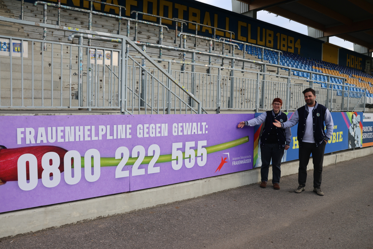 Der First Vienna FC 1894 setzt gemeinsam mit seinem Fan-Dachverband, den Vienna Supporters, ein starkes Zeichen für gesellschaftliches Engagement. Im Rahmen des Projekts „Fanblock-Bande“ wird ab dem kommenden Heimspiel am Freitag gegen Kapfenberg in der Naturarena Hohe Warte eine besondere Werbefläche sichtbar sein: Die Werbebande vor dem Fanblock wird den Autonomen Frauenhäusern Österreichs (AÖF) unentgeltlich zur Verfügung gestellt und bietet damit eine prominente Plattform im Umfeld der Vienna.