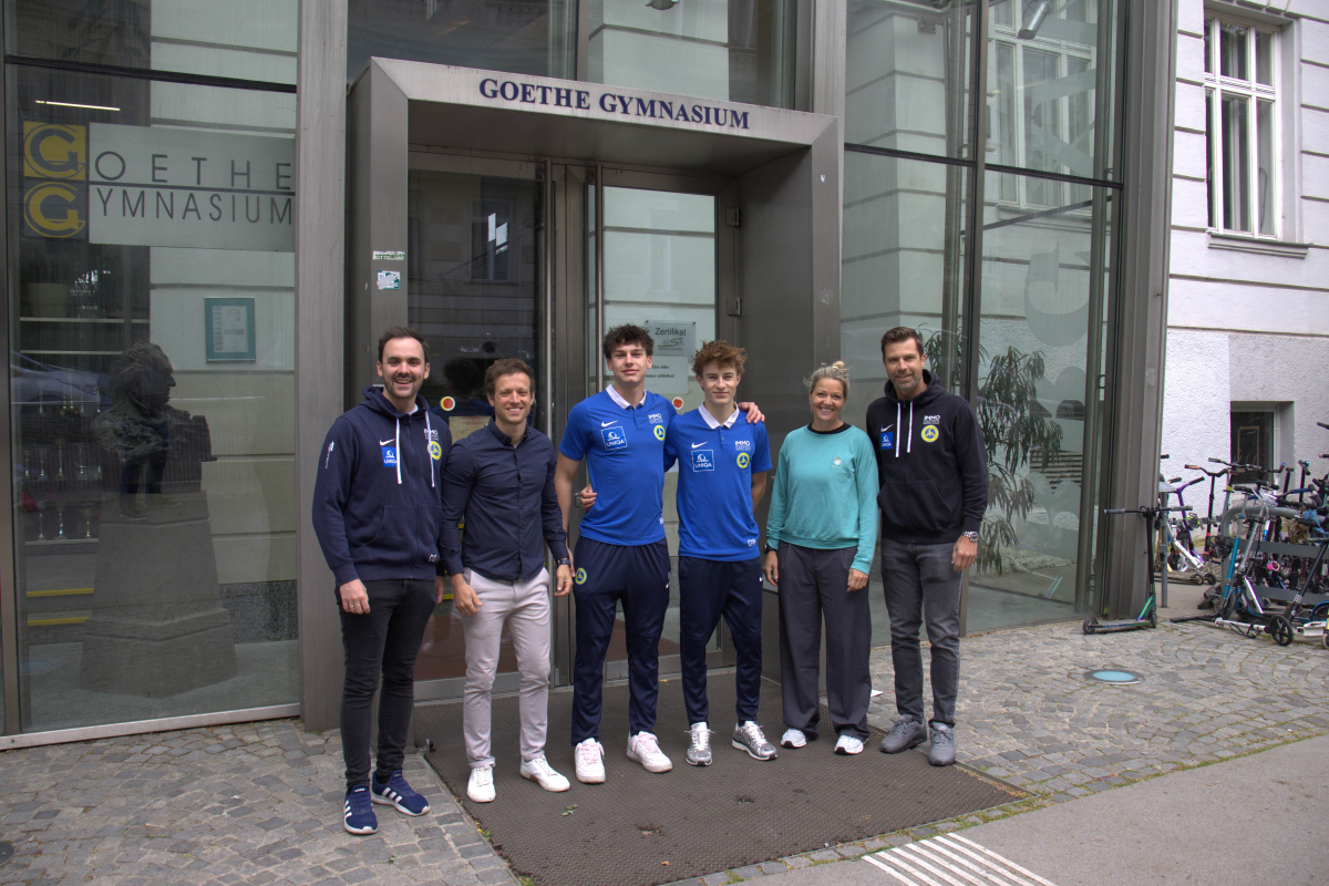 Besonders freut man sich auf Seiten der Schule, als auch beim Fußballverein, dass es bereits einige Schüler gibt, die bereits die Sportschuhe für blau & gelb schnüren. Oskar Weitmayr (8C) und Luca Roschütz (8C) sind bei der Vienna sportlich bestens unterwegs und befinden sich aktuell in der Maturaklasse des Goethe-Gymnasiums. „Neben der Begeisterung zum Sport verbinden uns auch gemeinsame und starke Werte. Es macht uns stolz die Partnerschaft mit Österreichs ältestem Fußballverein eingegangen zu sein“, zeigt sich Direktor Hubert Kopeszki von dem künftigen Miteinander mit dem Traditionsverein begeistert.